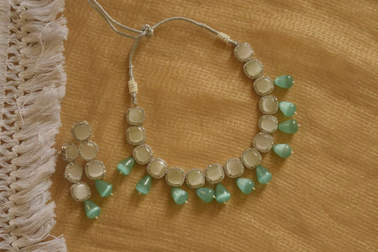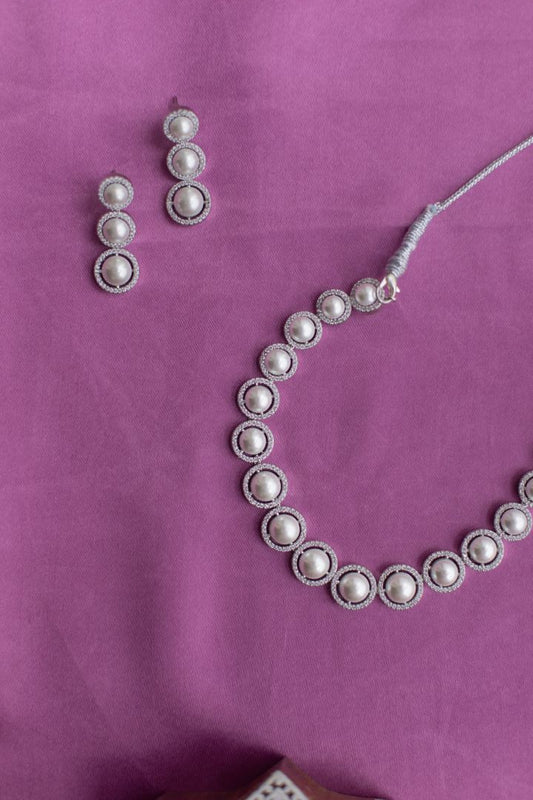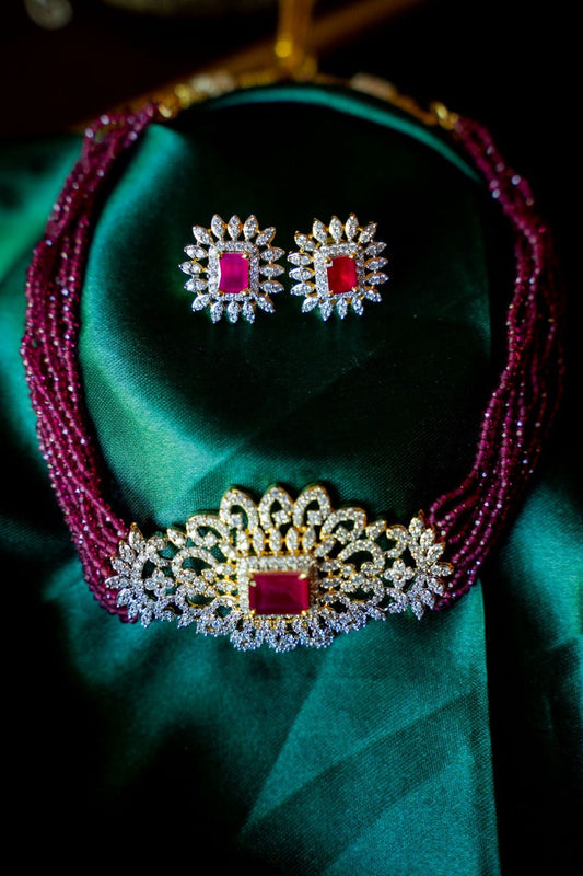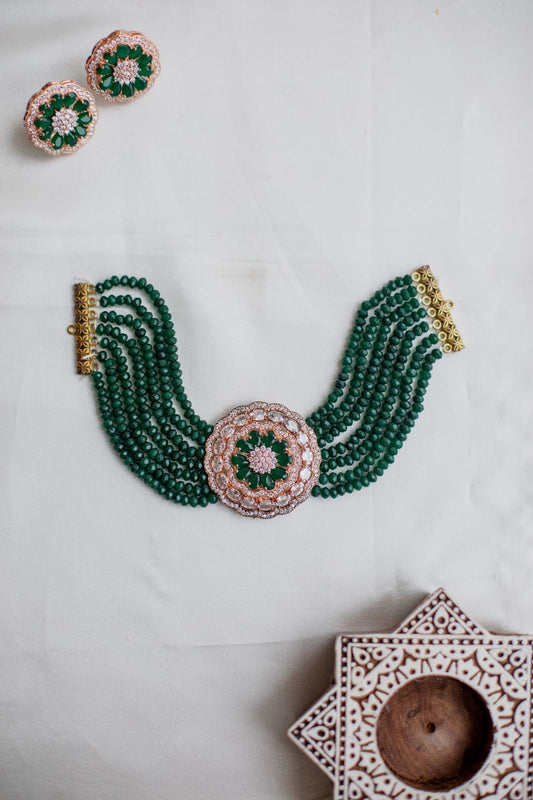 High Neck Seed Beads Square Flower Choker - Rhodium Finish