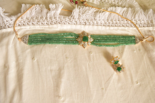 Gold Finish Multi Layer Seed Bead Crystal Necklace -Model #4