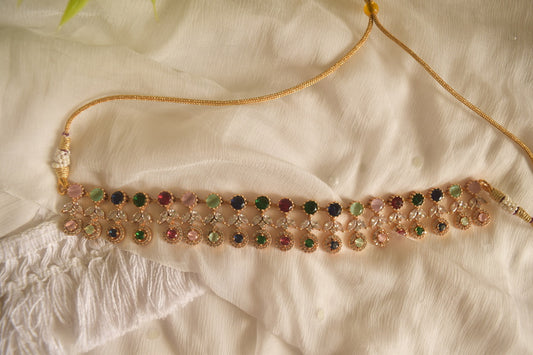 Gold finish Sequence Flower Kundan High Neck Choker -16