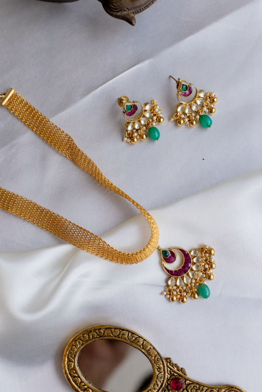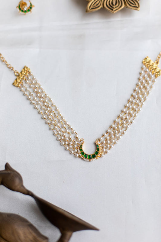 Gold Finish Nagas Lakshmi Pedantant Small Chocker pearl hangings
