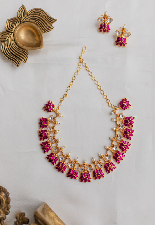 Gold Finish Revers Lotus & Heart Kundan Necklace