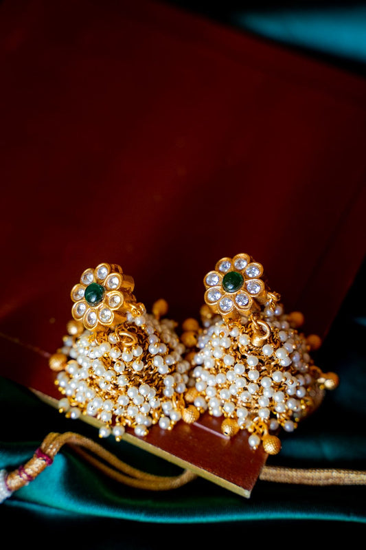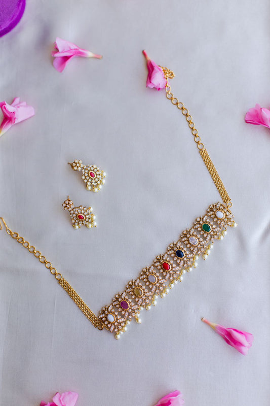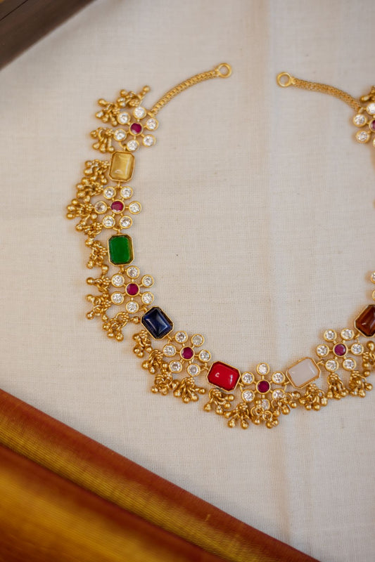 Matte Finish AD , Navaratna Stone with flower Necklace # Model 2