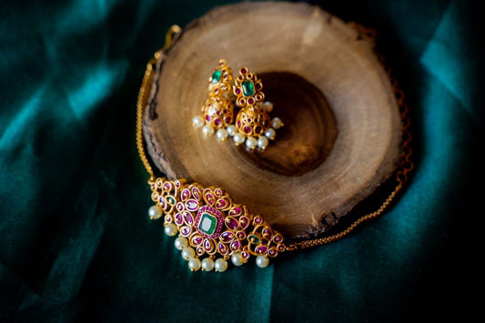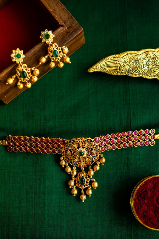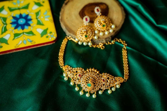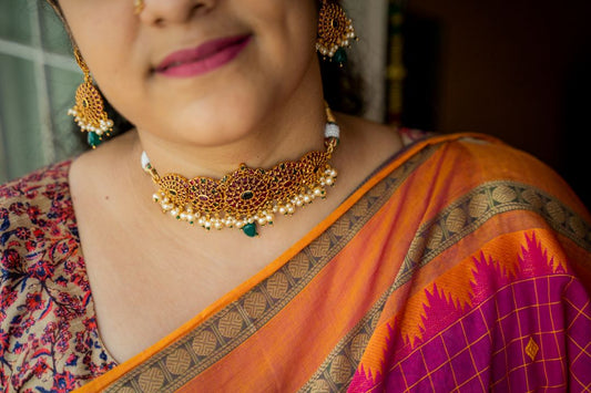 Matte Finish Peacock motif - Choker (Kerala Model)