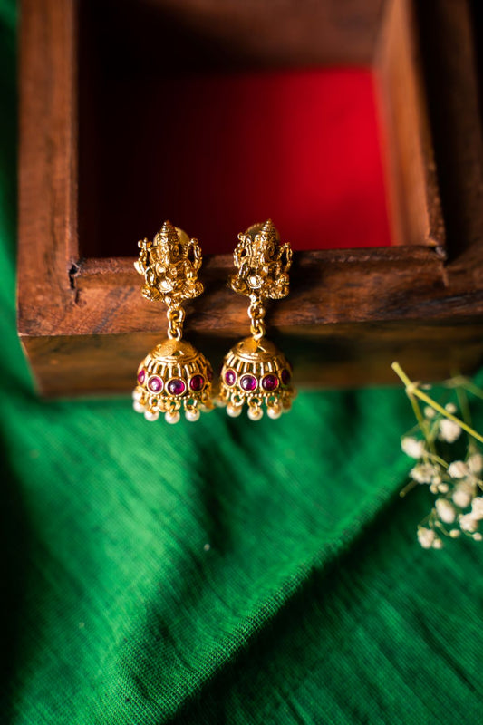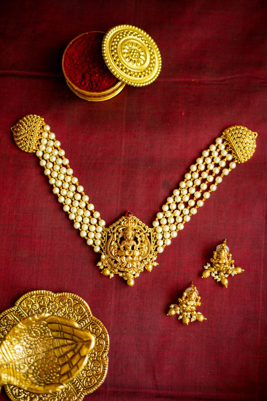 Matte Finish Layered Beads high neck choker with Ganesha pendant