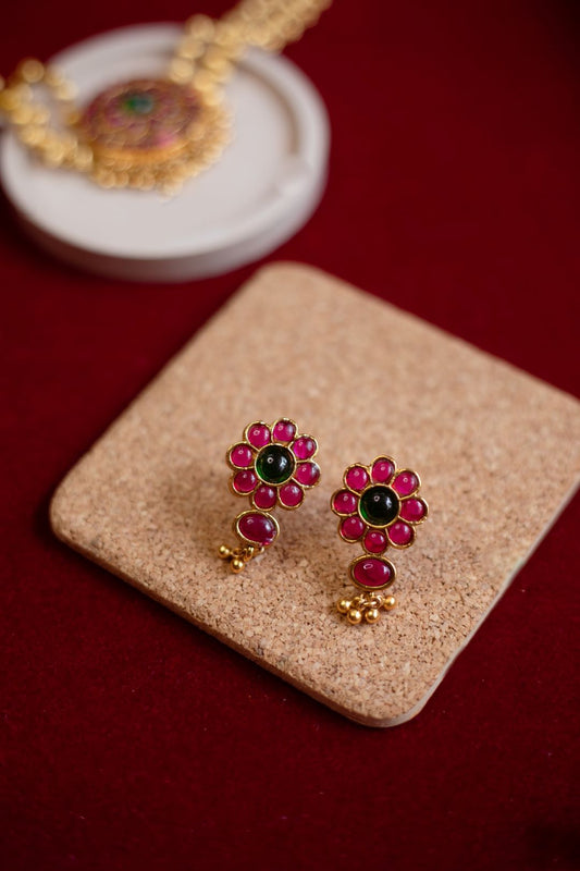 Matte Finish AD , Navaratna Stone with flower Necklace Model 2 #24