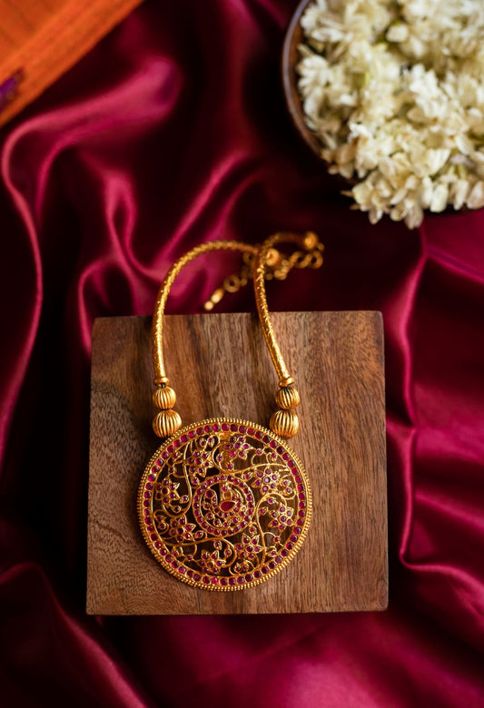Gold Finish Hasli with jumbo Chakri pendant with Stud - Model #2