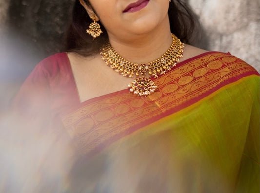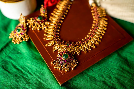KEMP 2 layered black beads with peacock Haaram & jhumka Hangings