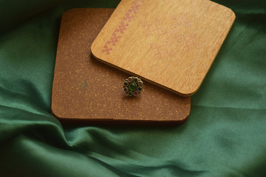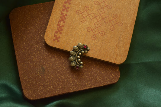 Silver finish medium nose pin - 4 rain drop and rounded flower(Pierced)