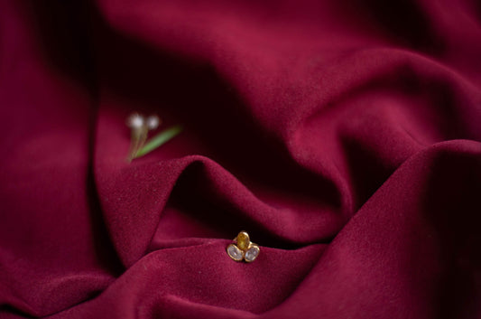 Gold finish 3 stone nose pin - white and golden yellow- (Pierced)