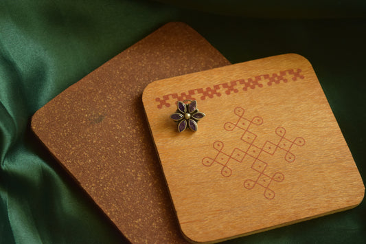 Silver finish tiny nose pin - Carved Annam(Pierced)
