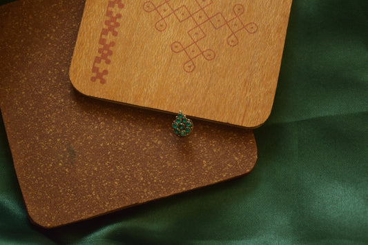Silver finish tiny nose pin - carved Mango lakshmi(Pierced)