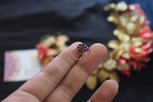 Silver finish medium nose pin flowered- red & Green- Clip On