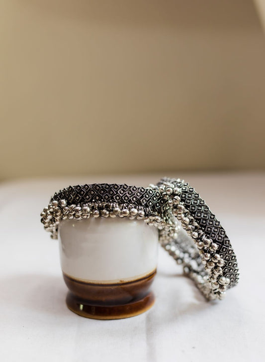 Silver Finish diamond type layered with muthu ghunghroo choker
