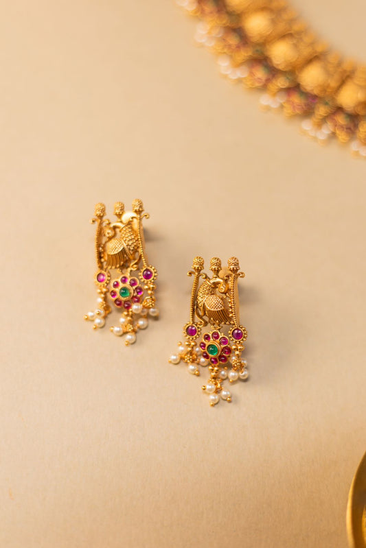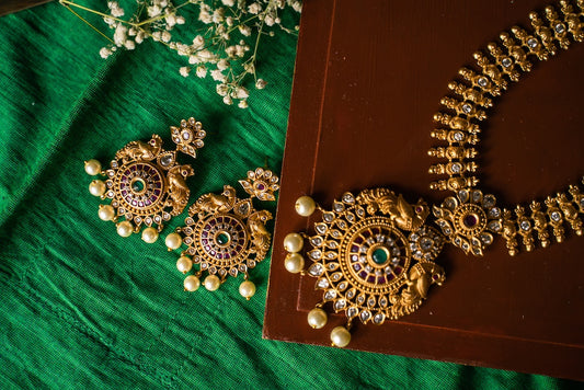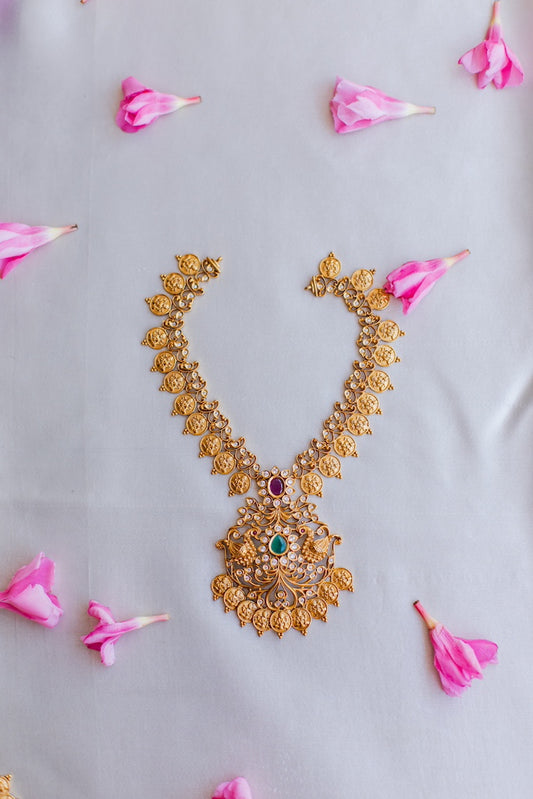 Matte Finish lakshmi coin Twin peacock pendant Necklace