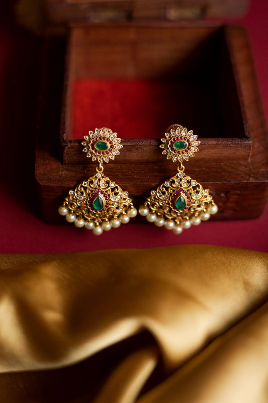 Gold Finish chain with NAVARATNA Mango motifs necklace
