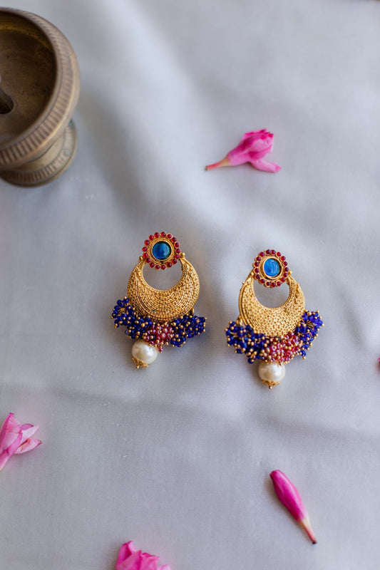 Gold Finish Chain Choker & cluster with chandbali - 67E