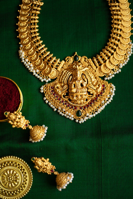Matte Finish coin Necklace with lakshmi pendant