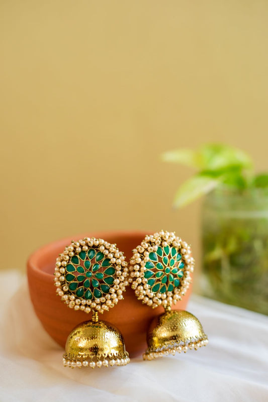 Statement Cluster pearl Green stud with jhumka (Jumbo Size)