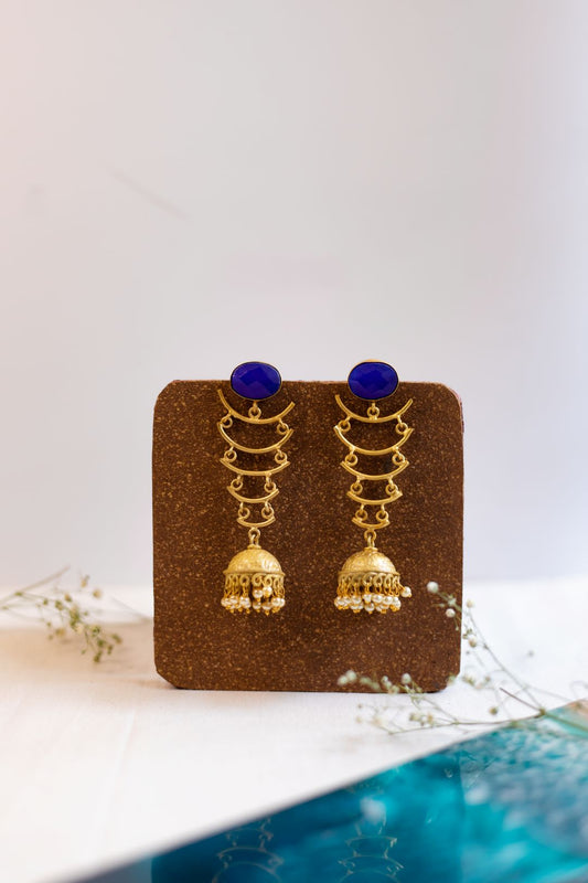 Statement Cluster pearl Blue stud with jhumka (Jumbo Size)