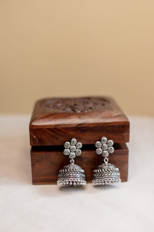 Oxidised Flower Stud Small Jhumka - Black 12(A)