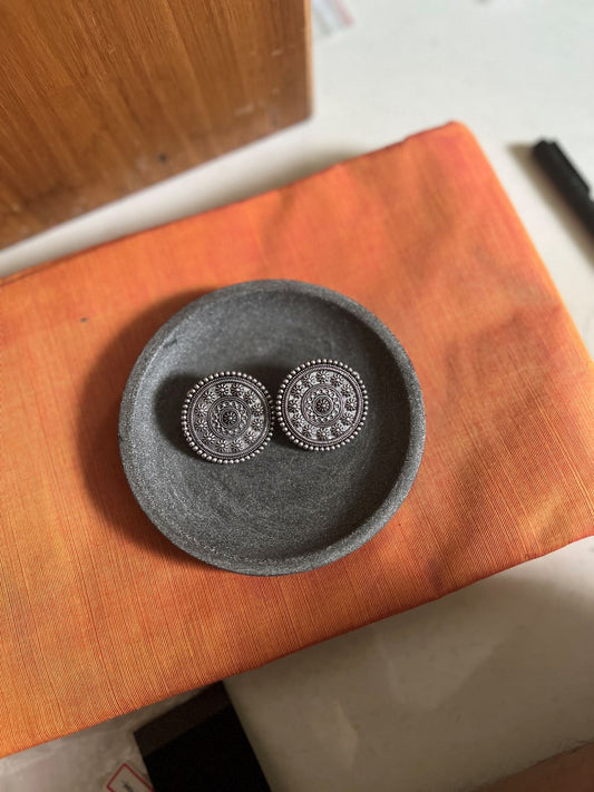 Oxidised Hook Drop Flower Carving Rectangle - Long