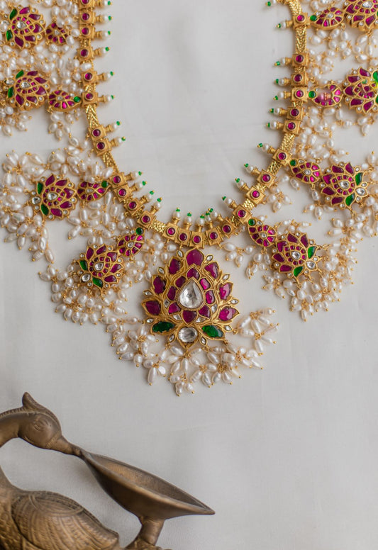 Kemp - 4 layered PEARL beads with peacock haaram #25
