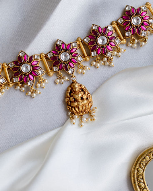 Gold Finish Nagas Lakshmi Pedantant Small Chocker pearl hangings