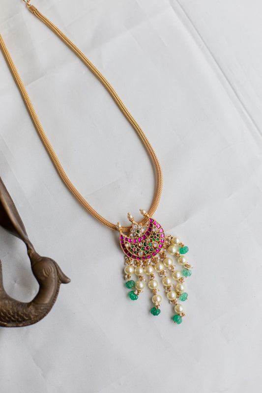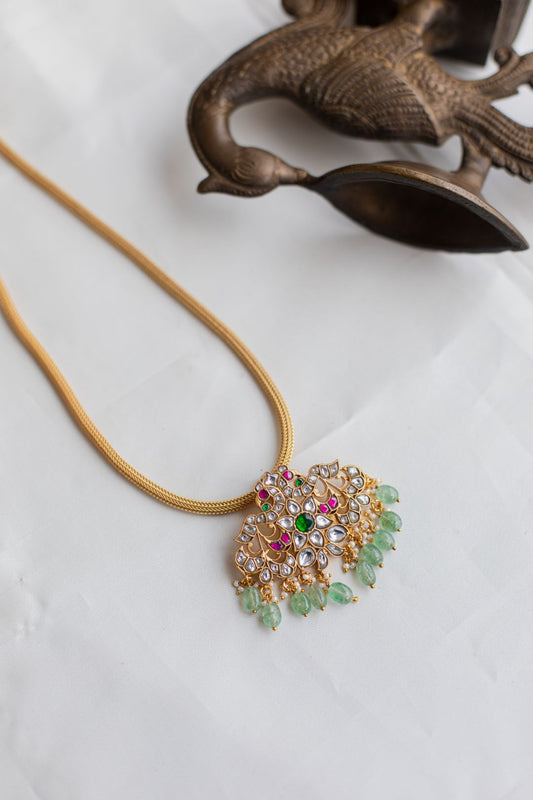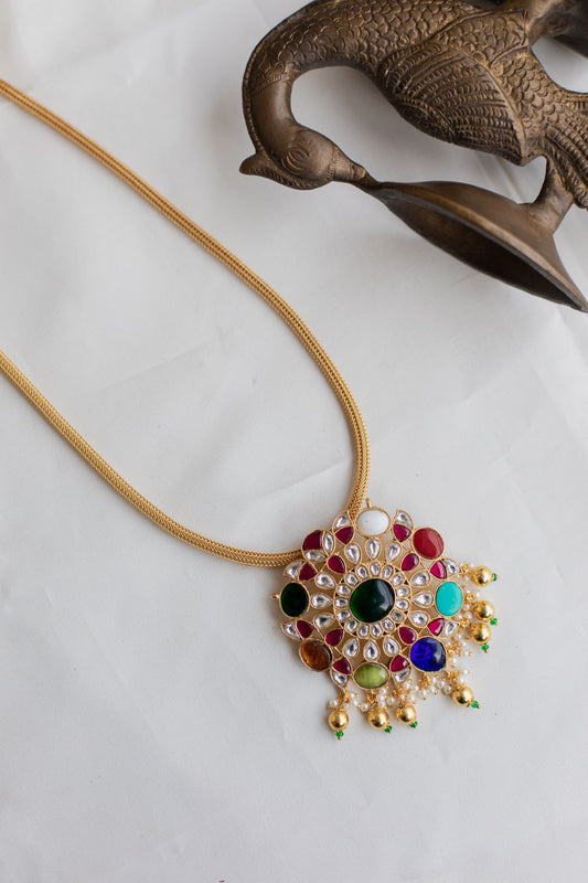 Gold Finish Chain with NAVARATNA Pendant#28