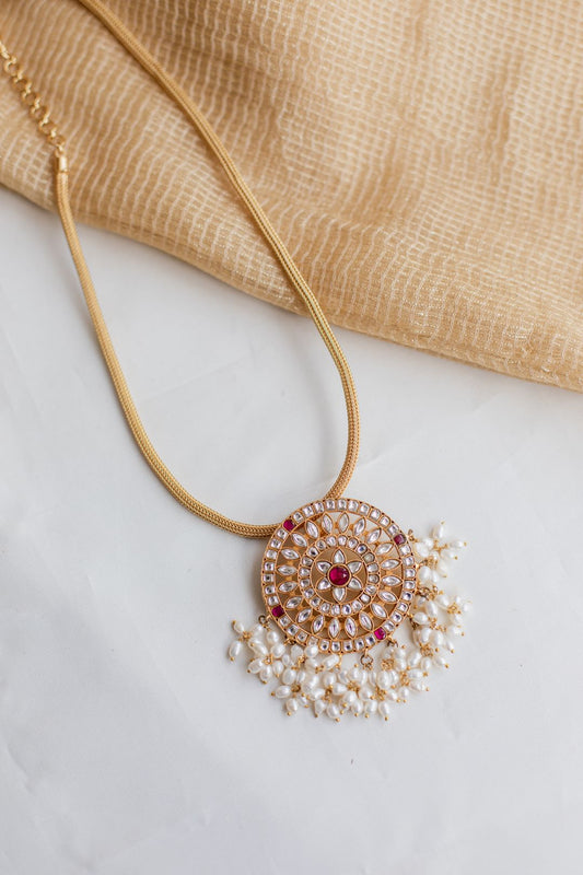 Gold Finish Long Chain with Jumbo Chakram Pedantant Necklace #20