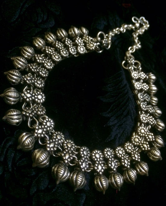 Silver Finish Half peacock sequence Necklace / Anklet with spikes droplets - Mini Kolhapuri Necklace