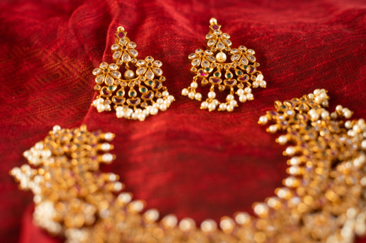 Gold Finish Chain Choker & cluster with chandbali - 67G