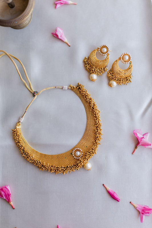 Gold Finish Pearl Beads dainty high neck chocker-14 E