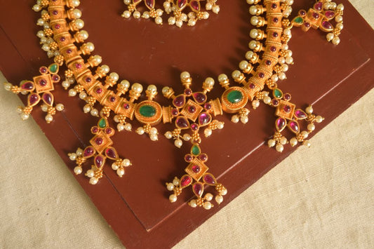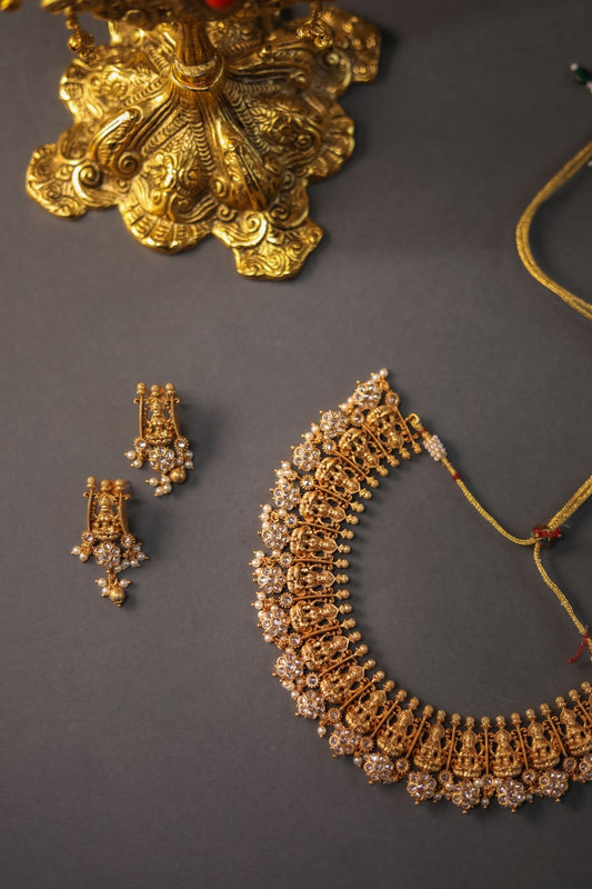 Gold Finish Nagas Lakshmi Pedantant Small Chocker pearl hangings