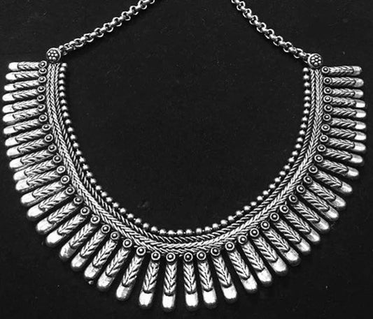Silver Finish Spike Kolhapuri Necklace Model 2 with stud