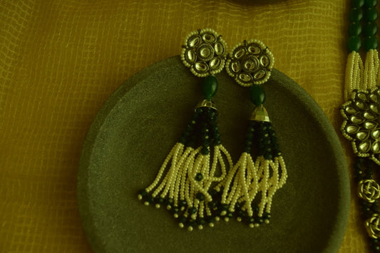 Silver Finish Sequnce rain drop stone necklace with stud -(Model 3)