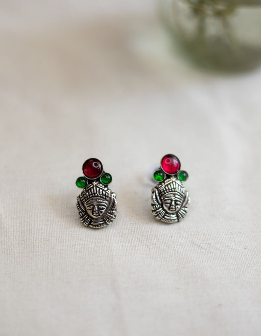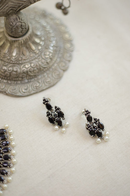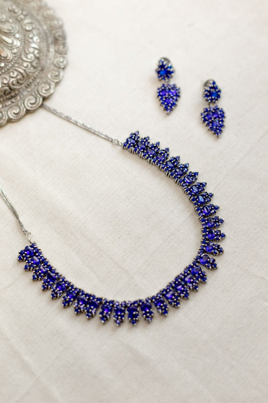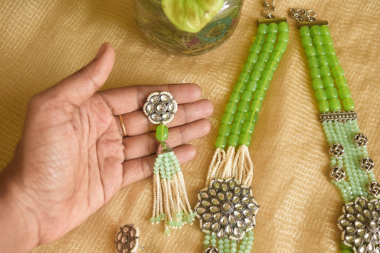 Silver Finish Sequnce oval stone necklace with stud -(Model 2)