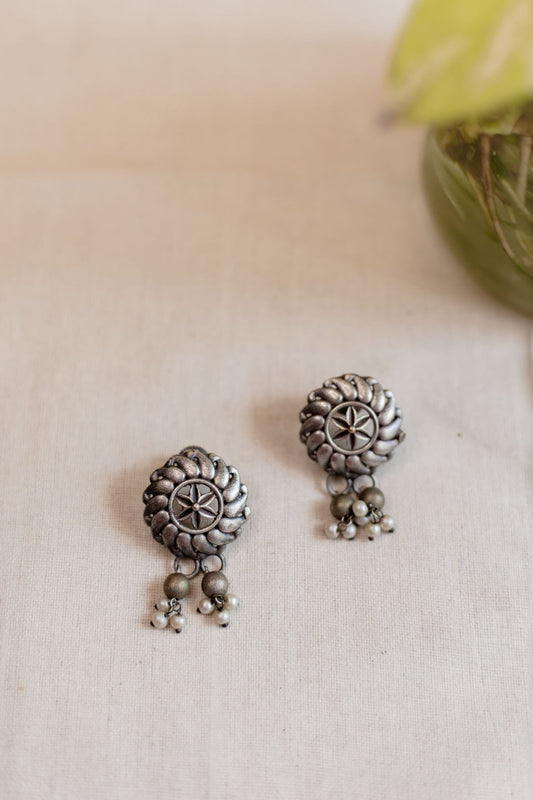 Silver Finish Layared haaram with Beads ,flower mugappu -41B