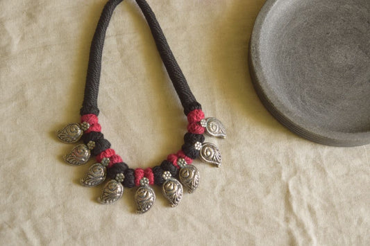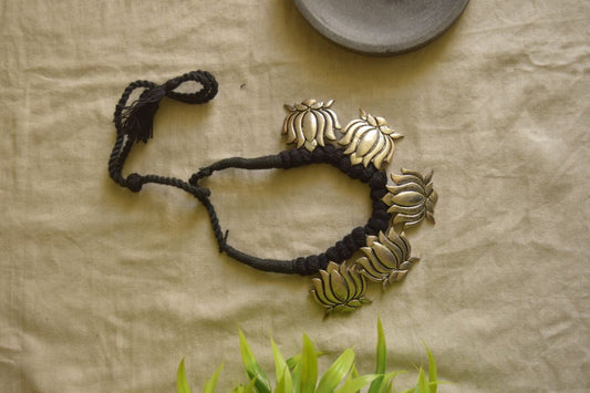 Silver finish -Black thread with 5 jhumbo lotus pendant necklace