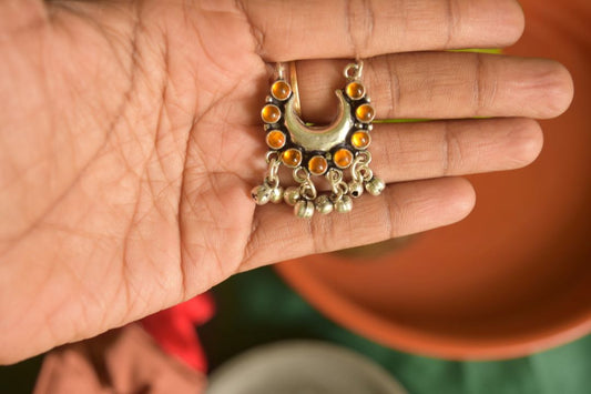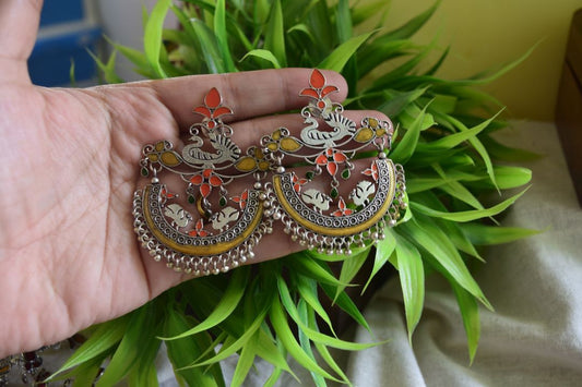 Oxidised Peacock Carving Enamel Chandbali-70C