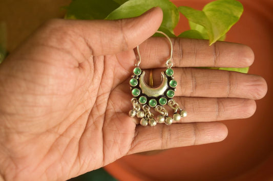 Oxidised Peacock Carving Enamel Chandbali-70B