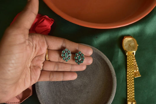 Oxidised Flower Stone Stud Small-64B
