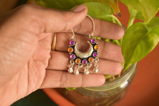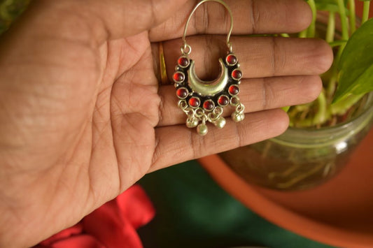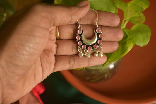 Oxidised Half Moon Small Stone Chandbali -66B