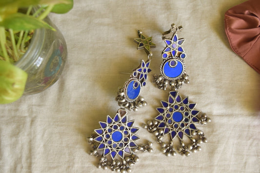 Silver Finish Lotus hook drop jhumkas-22(B)