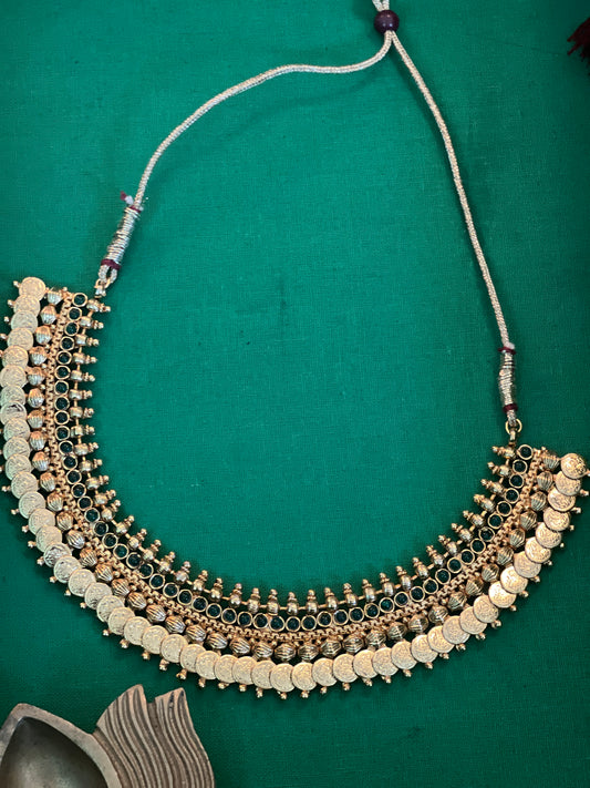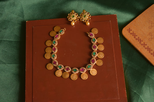 Gold Finish Small Lakshmi coin Necklace with Stud#19