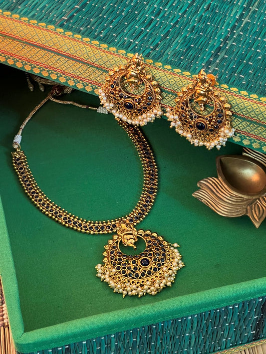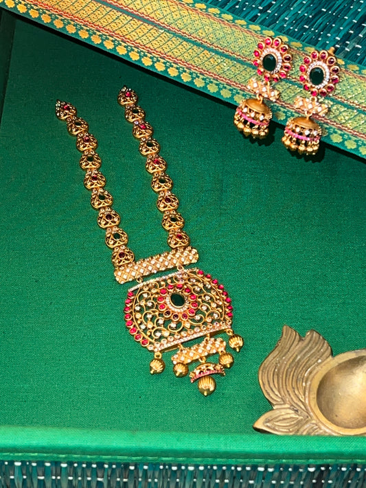 Matte Finish necklace with dancing vinayagar pendant with stud