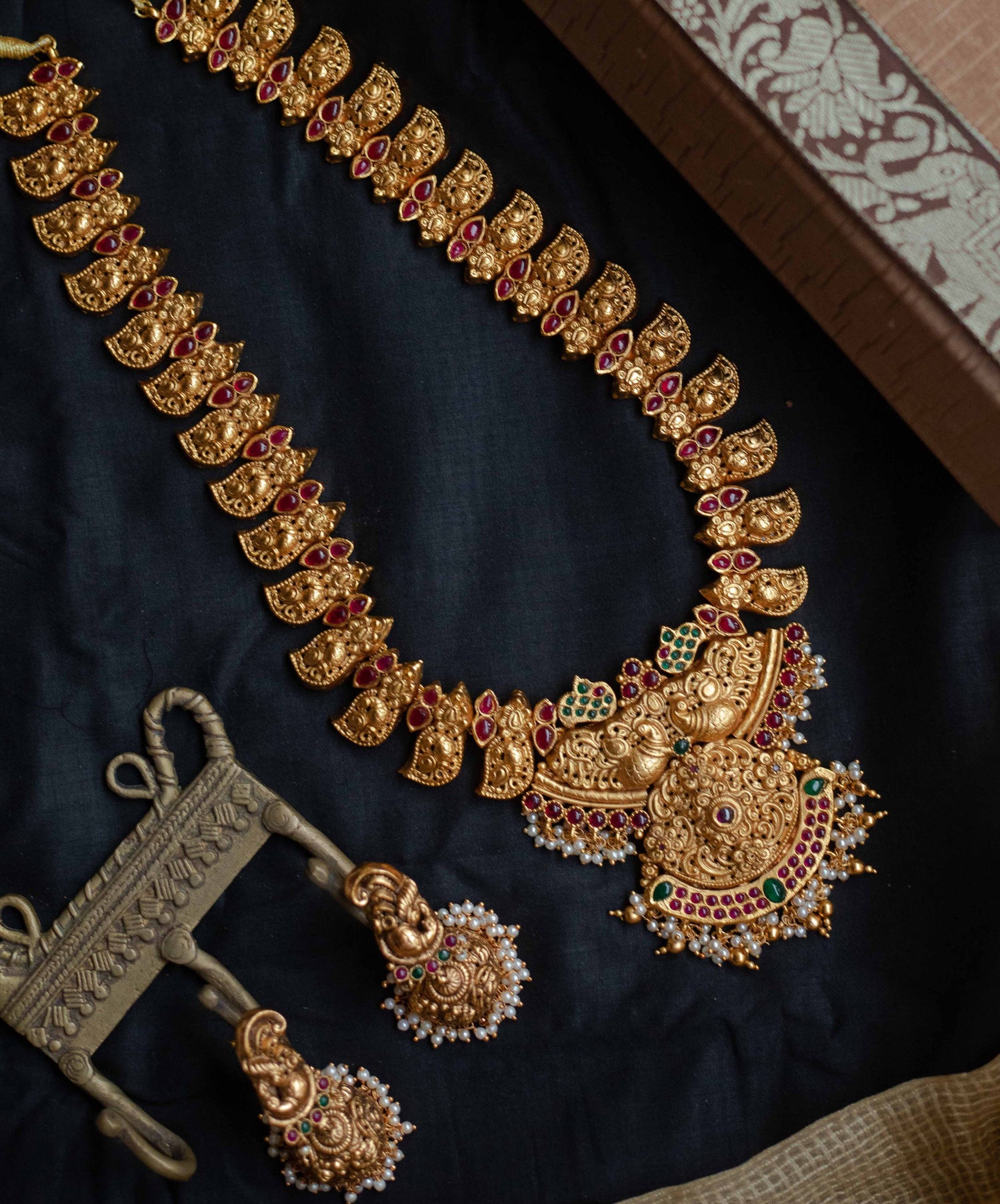 Immerse yourself in the regal splendor of Haarams, the epitome of South Indian grace and grandeur. Handcrafted with opulent designs and timeless allure, each Haaram lets you embrace your inner queen!