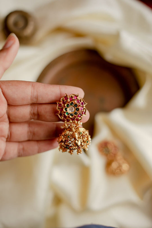 Matte finish - Peacock & Ganesha Jhumka