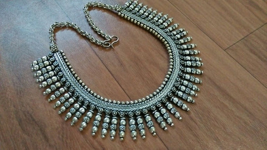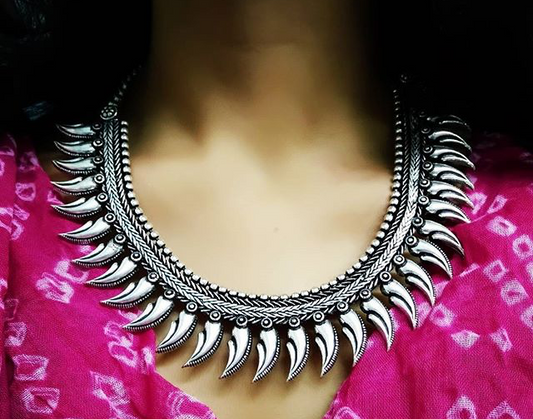 Silver Finish Spike Kolhapuri Necklace Model 3 with stud