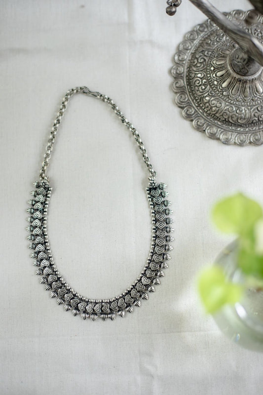Silver Finish tiny heart motifs with heart droplets - Mini Kolhapuri Necklace