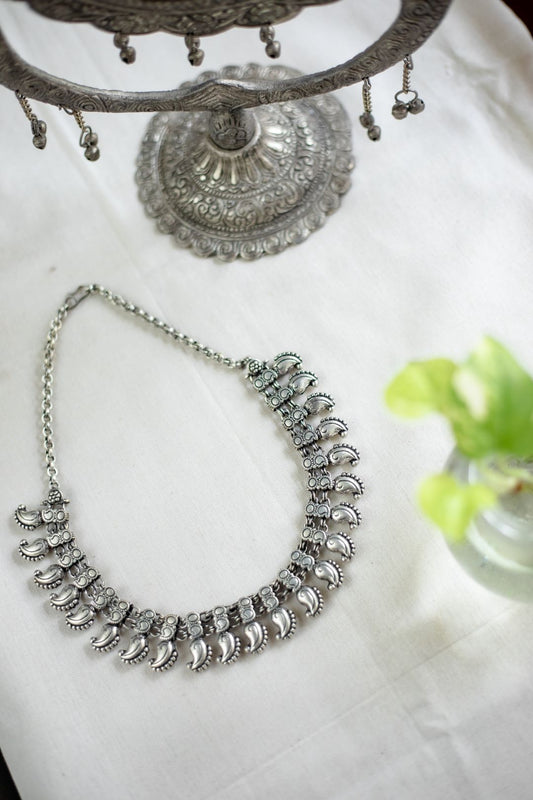 Silver Finish tiny mango motifs with Mango Droplets - Kolhapuri Necklace